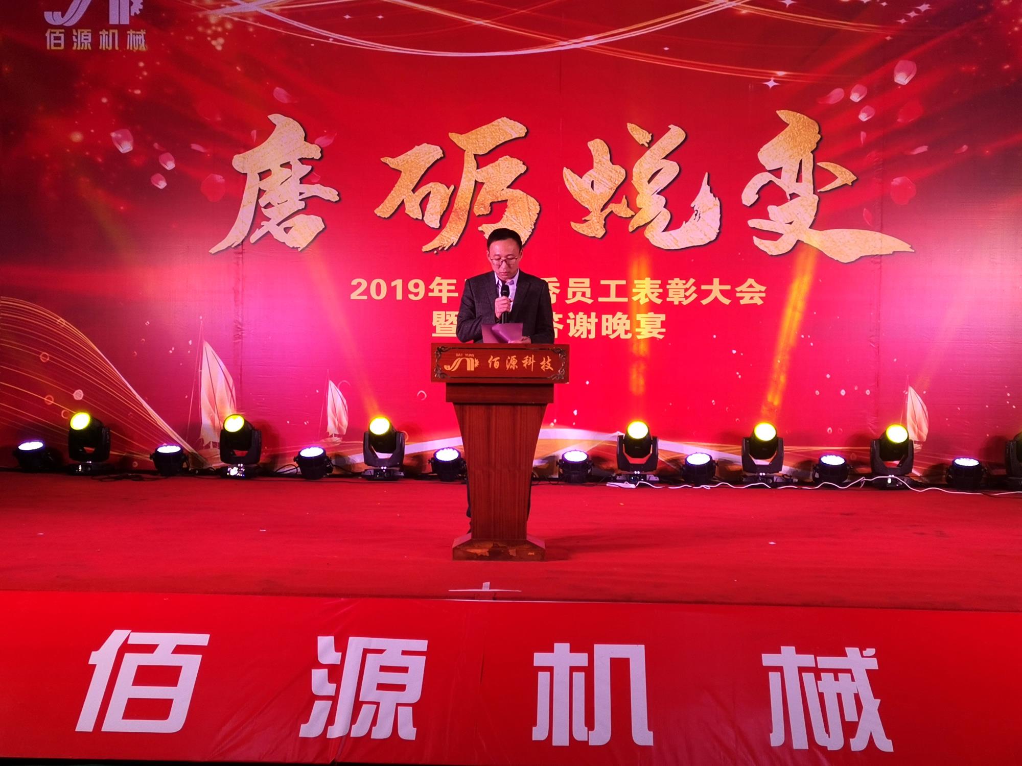 發(fā)布時(shí)間:[ 2020-01-19 ]磨礪蛻變,2019年度優(yōu)秀員工表彰大會(huì)暨尾牙答謝晚宴報(bào)道2020年1月10日,泉州佰源機(jī)械科技有限公司于公司廠區(qū)內(nèi)部舉辦了以“磨礪蛻變”為主題的2019年度優(yōu)秀員工表彰大會(huì)暨尾牙答謝晚宴,近500名員工和嘉賓齊聚一堂,共饗盛典。對(duì)酒當(dāng)歌,其樂融融,回望輝煌過去,把握現(xiàn)在,展望美好未來。2019年悄然過去,我們有成功,有喜悅…